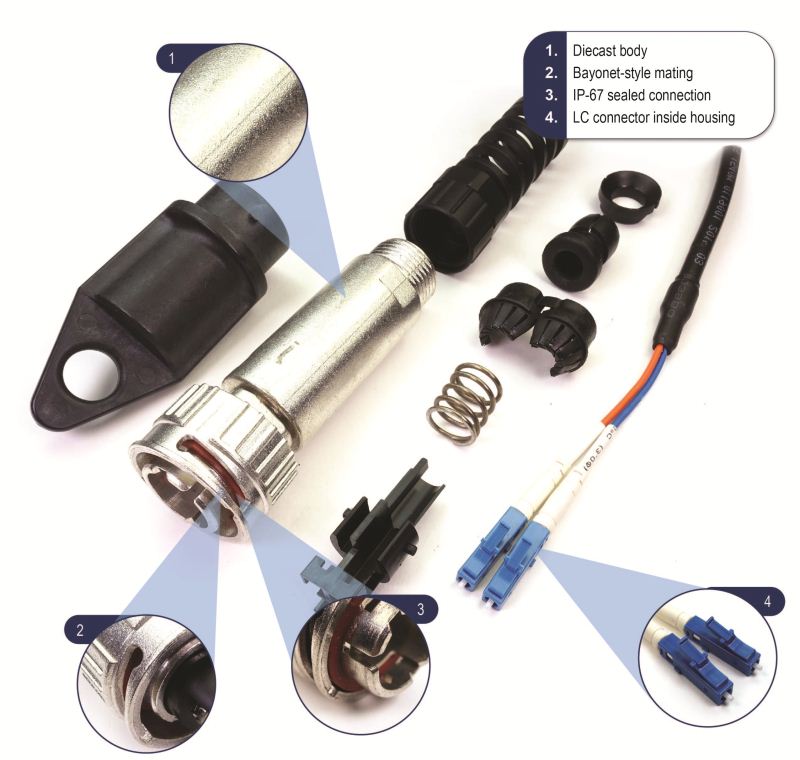 安費諾光學(xué)j型連接器外殼設(shè)計用于與室外安裝的電子設(shè)備進行光學(xué)連接。使用“直接連接”的拓撲結(jié)構(gòu),J-Connector可以接受SFP或SFP+可插拔收發(fā)器,有效地將無源光學(xué)組件轉(zhuǎn)換為有源電氣接口。這種連接方法允許快速和容易更換光學(xué)元件,并允許重新配置升級。 現(xiàn)場可安裝版本可以安裝在現(xiàn)有的室外單工或雙工LC組件上,用于需要現(xiàn)場或本地組裝制造的應(yīng)用。j型連接器的光艙壁插座設(shè)計成可以接受任何符合MSA標(biāo)準(zhǔn)的SFP或SFP+收發(fā)器,提供IP67級的水和灰塵進入防護,以及對面板/保持架的接地,以改善電磁干擾屏蔽。